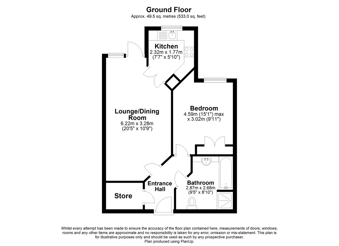 7' 7" x 5' 10" (2.31m x 1.78m) A fully fitted kitchen with double glazed window overlooking the communal gardens. Built in oven, hob and extractor plus fridge freezer