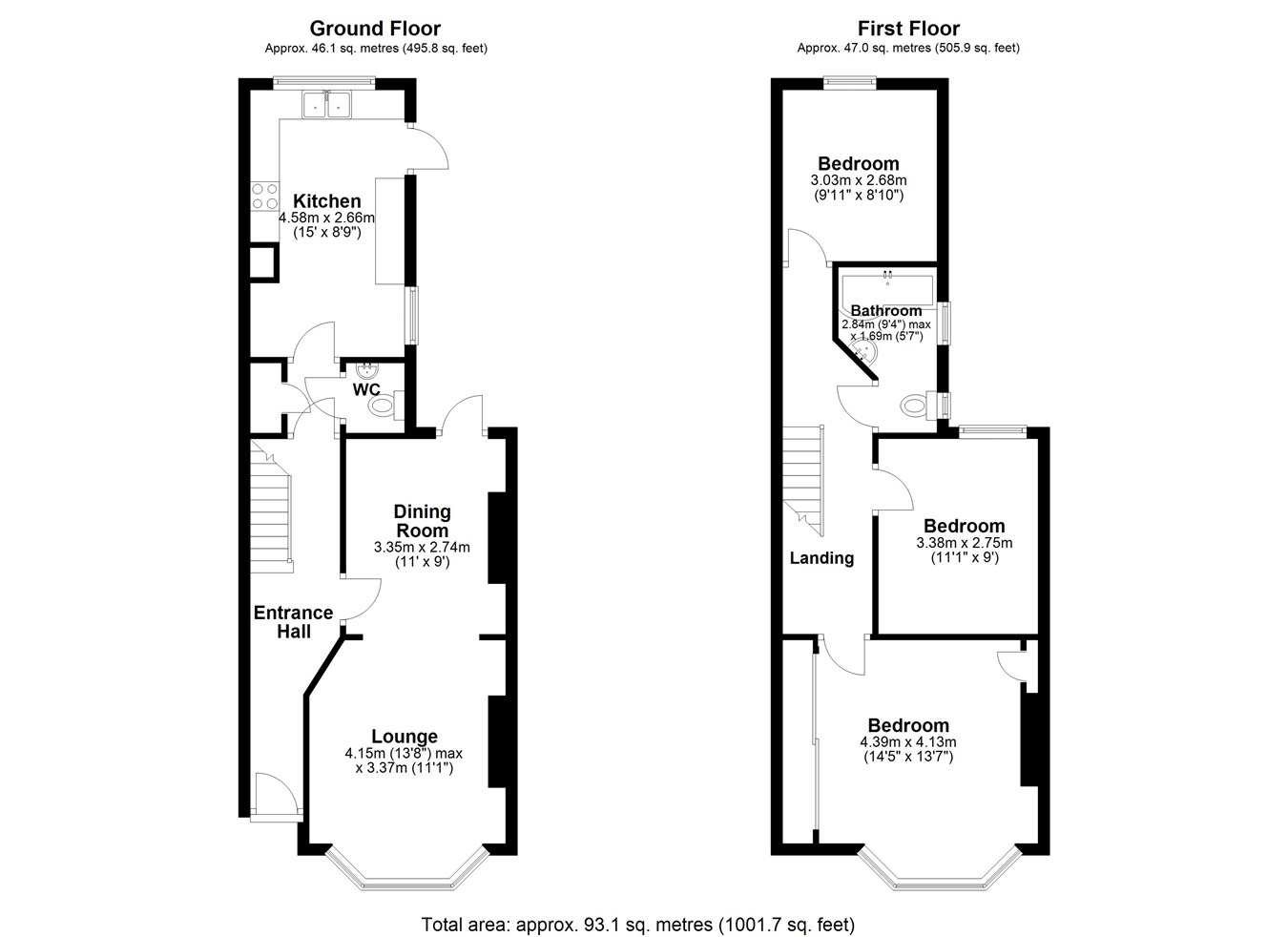 9' 4" x 5' 7" (2.84m x 1.70m)